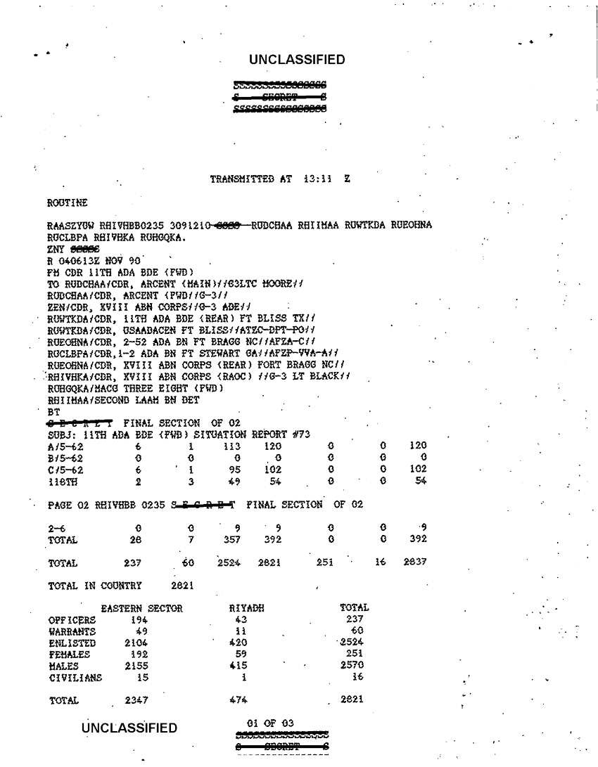 Document 52 f:/Week-16/BX000033/SITUATION REPORTS 11TH ADA BDE G3 NOV 90/11th ada bde situation report 71:1217961115006