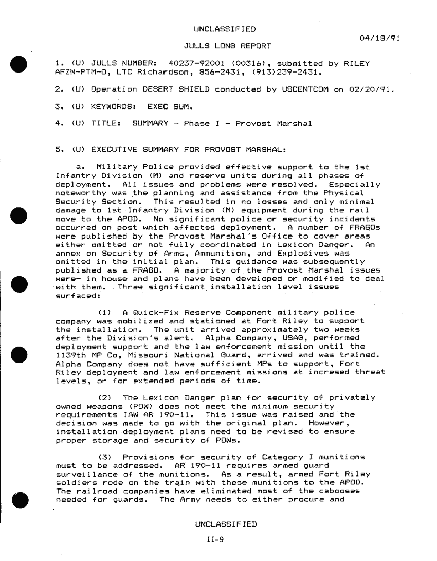 Document 517 f:/Week-26/BX001008/DESERT STORM AFTER ACTION REPORTS/special information for installation after actio:12179611150511