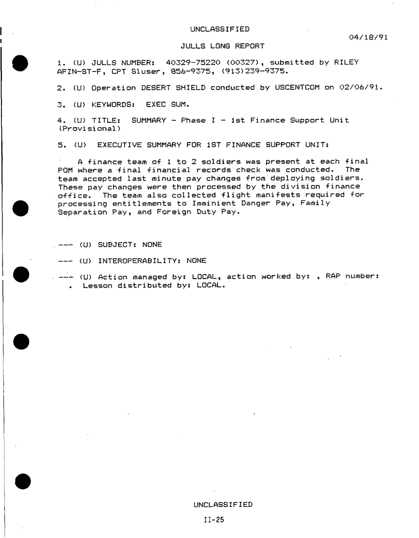 Document 517 f:/Week-26/BX001008/DESERT STORM AFTER ACTION REPORTS/special information for installation after actio:12179611150511