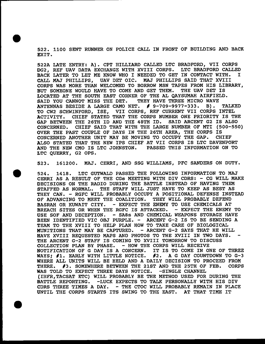 Document 57 f:/Week-30/BX000454/HISTORIANS BACKGROUND MATERIAL FILES - DAILY LOG SHEETS/daily staff journal and duty officers log:12179611150712