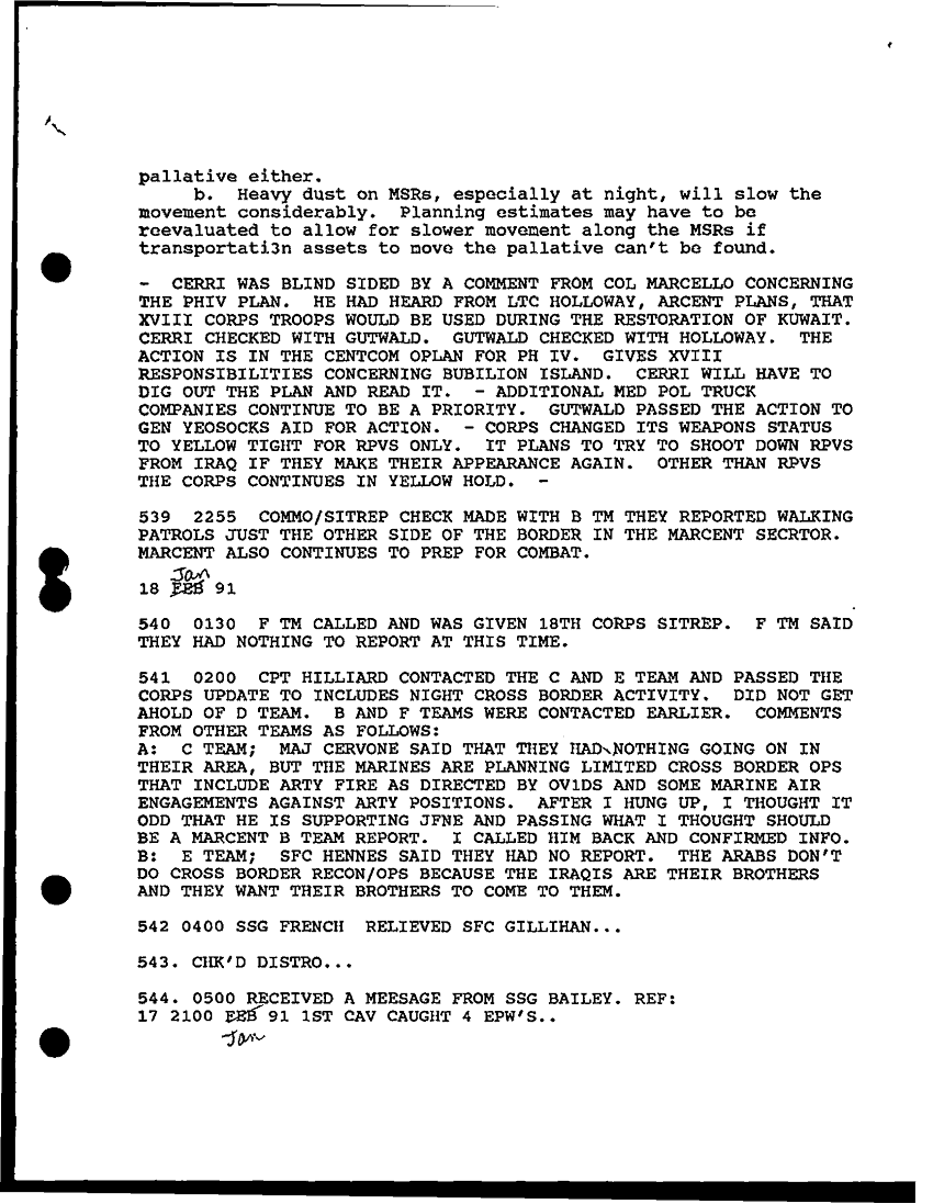 Document 57 f:/Week-30/BX000454/HISTORIANS BACKGROUND MATERIAL FILES - DAILY LOG SHEETS/daily staff journal and duty officers log:12179611150712