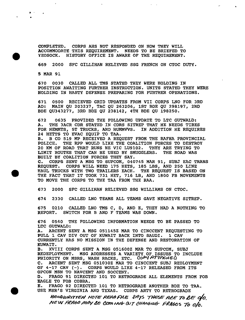 Document 57 f:/Week-30/BX000454/HISTORIANS BACKGROUND MATERIAL FILES - DAILY LOG SHEETS/daily staff journal and duty officers log:12179611150712