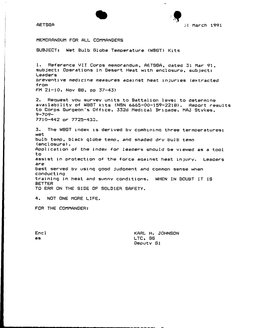 Document 1 f:/Week-24/BX000211/TASK FORCE DEMO LOG 14 MAR- 1 APR 91/wet bulb globe temperature:1217961115039