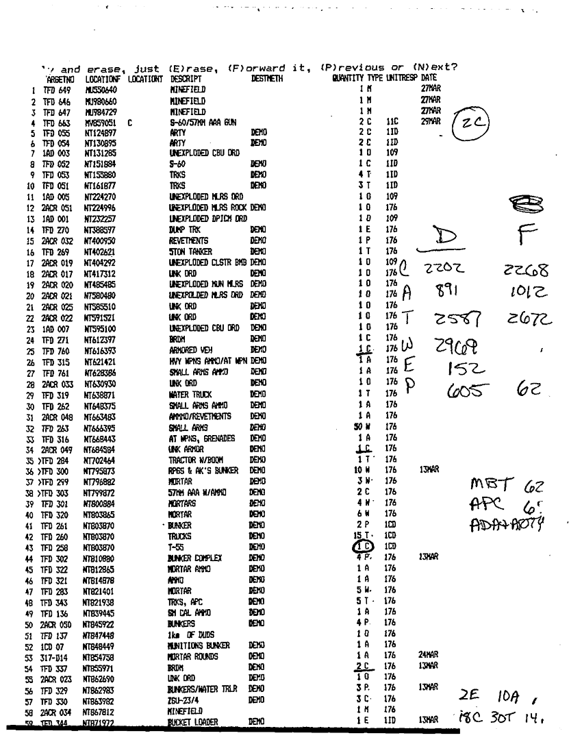Document 49 f:/Week-24/BX000211/TASK FORCE DEMO LOG 11-13 MAR 91/executed demolitions report:12179611151116