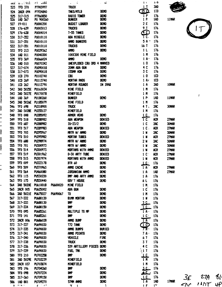 Document 49 f:/Week-24/BX000211/TASK FORCE DEMO LOG 11-13 MAR 91/executed demolitions report:12179611151116