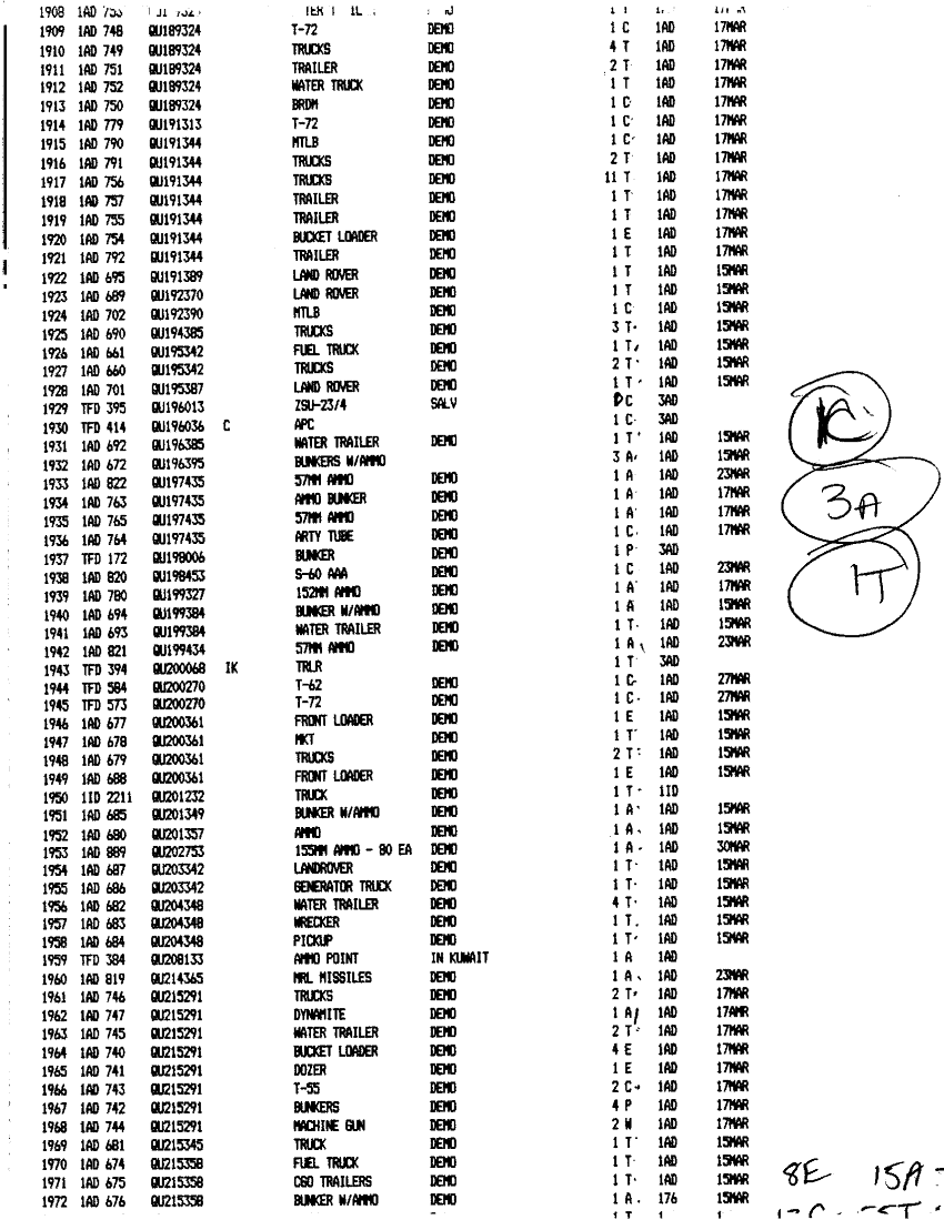 Document 49 f:/Week-24/BX000211/TASK FORCE DEMO LOG 11-13 MAR 91/executed demolitions report:12179611151116
