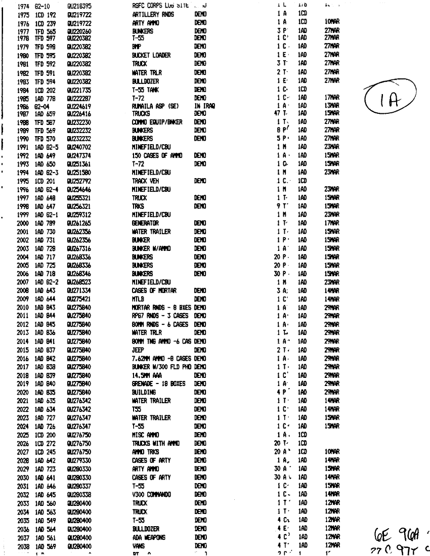 Document 49 f:/Week-24/BX000211/TASK FORCE DEMO LOG 11-13 MAR 91/executed demolitions report:12179611151116
