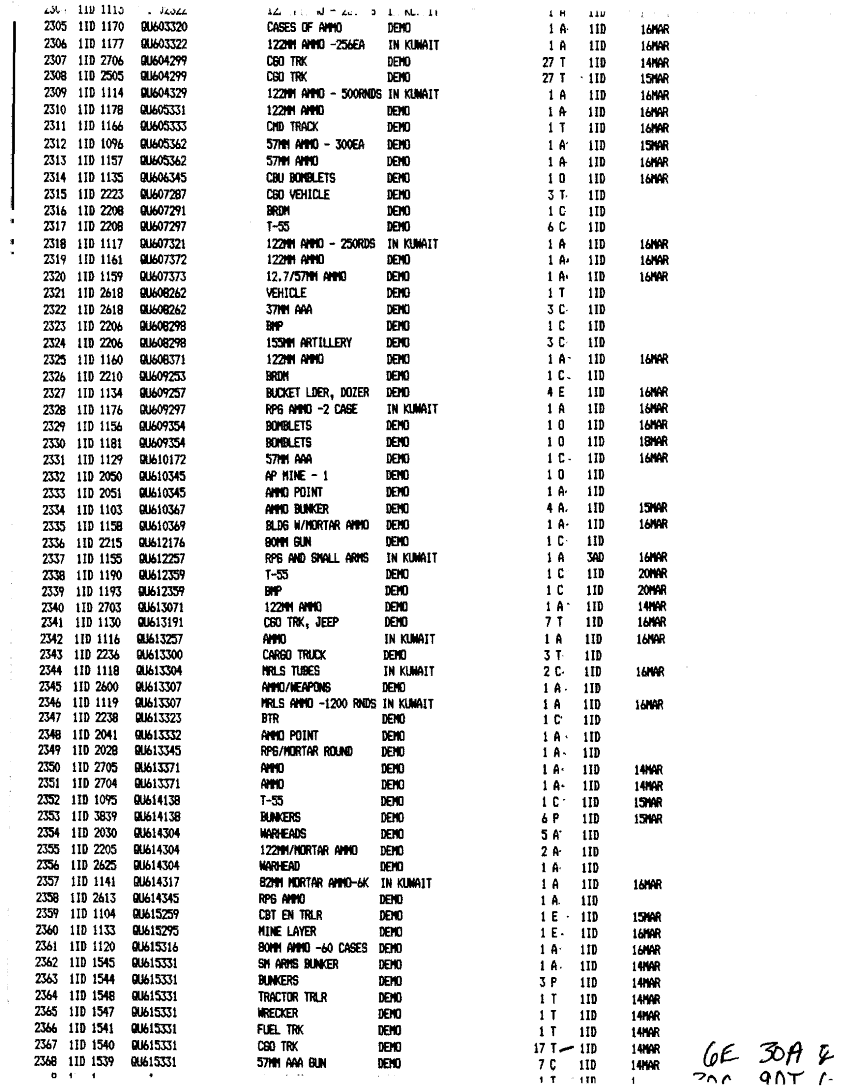 Document 49 f:/Week-24/BX000211/TASK FORCE DEMO LOG 11-13 MAR 91/executed demolitions report:12179611151116