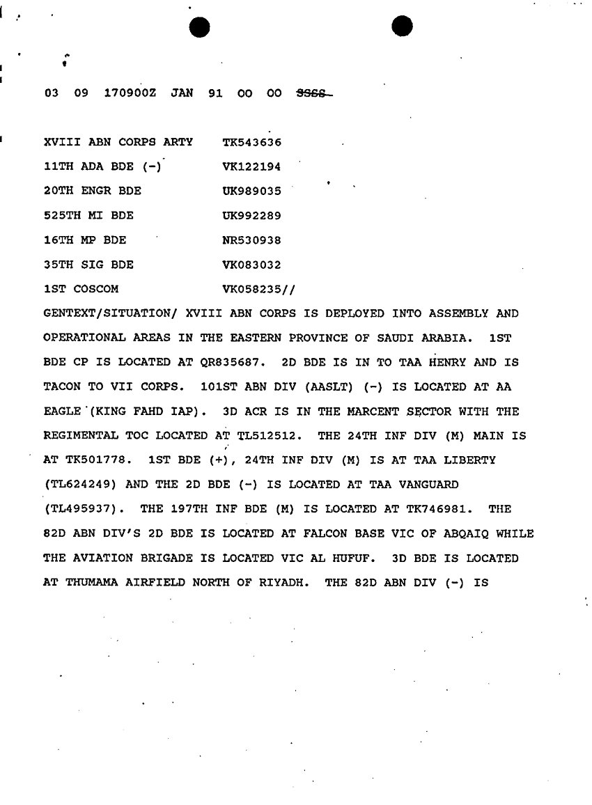 Document 9 f:/Week-10/BX000020/DUTY LOG G3 REAR XVIII ABC MAIN SITREPS CONT JAN 91/sitrep 17 jan 91:12179611154351