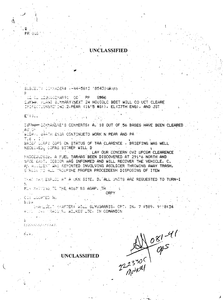 Document 2 f:/Week-09/BX000019/DUTY LOG G3 REAR 22 MAR 91/commanders comments:12179611154957