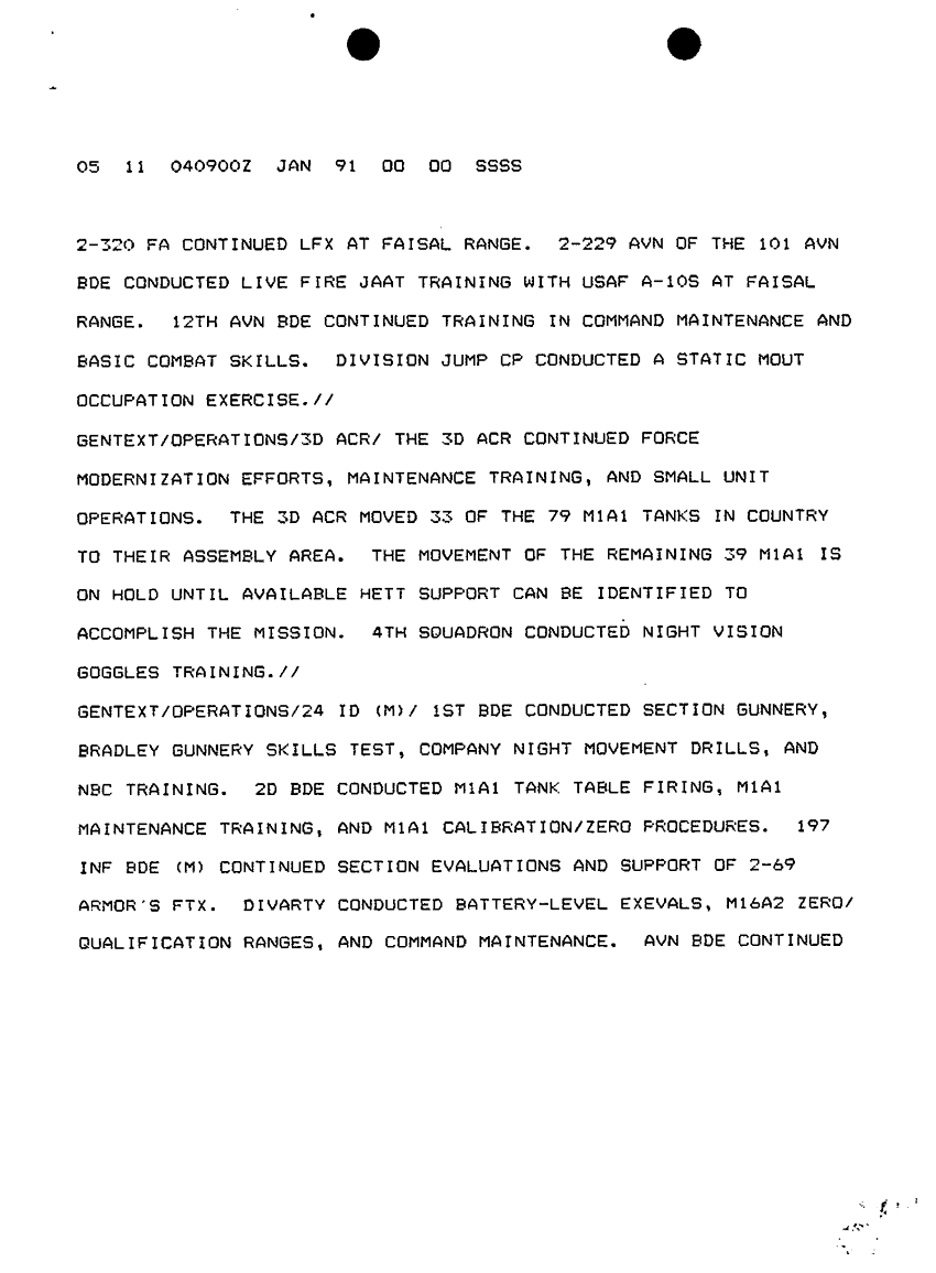 Document 11 f:/Week-10/BX000020/DUTY LOG G3 REAR XVIII ABC MAIN SITREPS JAN 91/message dated 4 jan 91:12179611155967