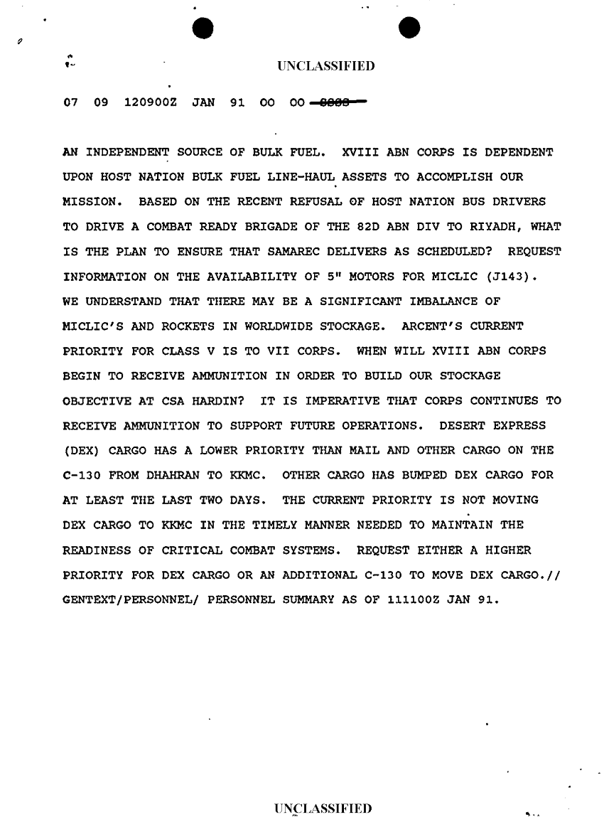 Document 9 f:/Week-10/BX000020/DUTY LOG G3 REAR XVIII ABC MAIN SITREPS JAN 91/message dated 12 jan 91:12179611160068