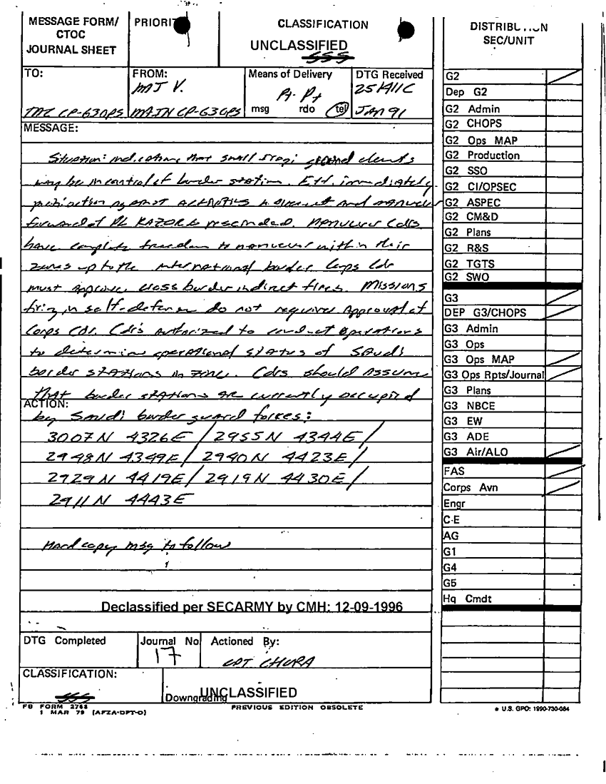 Document 25 f:/Week-12/BX000024/DUTY LOG G3 TAC CP 24 JAN 91/daily staff journal or duty officers log:12179611153137