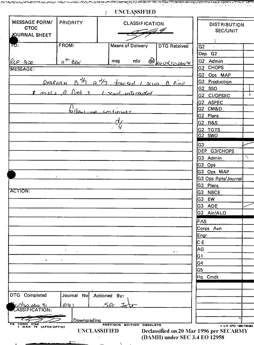 Document 1 f:/Week-09/BX000019/DUTY LOG G3 REAR 27 JAN 91/message form 260430 jan 91:12179611160372