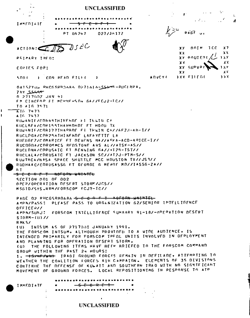 Document 3 f:/Week-22/BX001428/INCOMING MESSAGES DESERT SHIELD G2 JAN 3 OF 4/message forscom intelligence summary 91 18:12179611161585