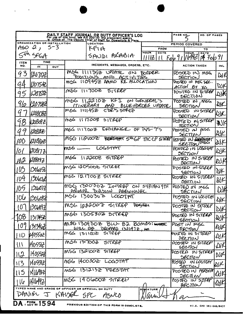Document 10 f:/Week-46/BX004003/1-28 FEB 91 STAFF JOURNAL ASO 2 5TH SFGA KFIA/daily staff journal or duty officers log:12179611162192