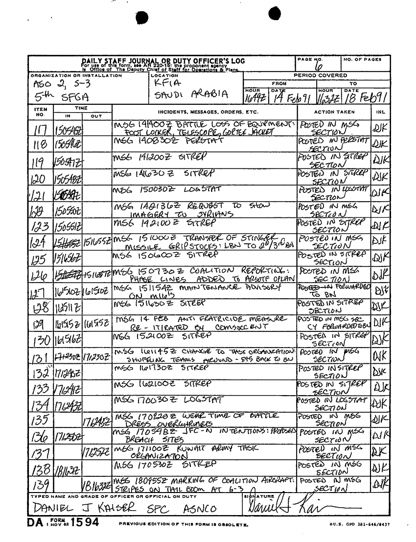 Document 10 f:/Week-46/BX004003/1-28 FEB 91 STAFF JOURNAL ASO 2 5TH SFGA KFIA/daily staff journal or duty officers log:12179611162192