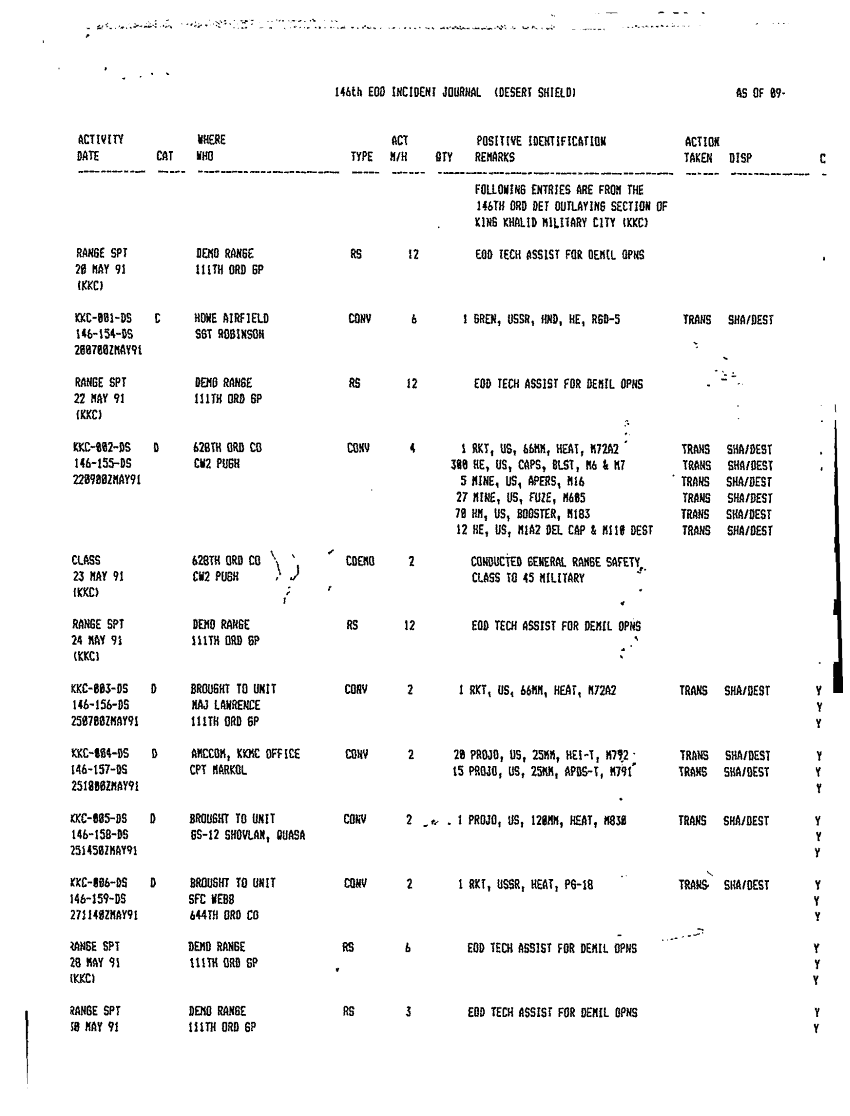 Document 5 f:/Week-46/BX005555/512TH EODCT SUBORD UNIT JOURNALS EOD INCIDENTS/eod activity and status report ods 1 31 may 91:121796111630102