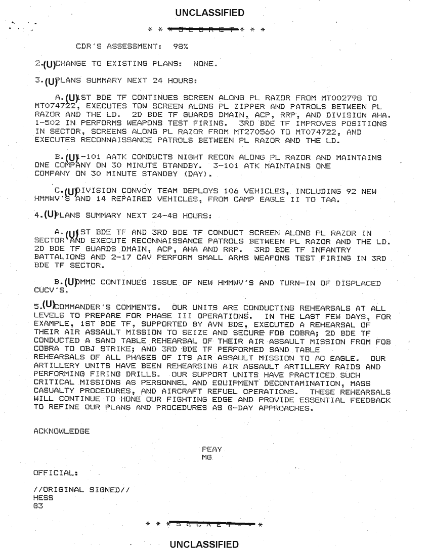Folder Title = 101ST ABN DIV SITREPS FEB 91