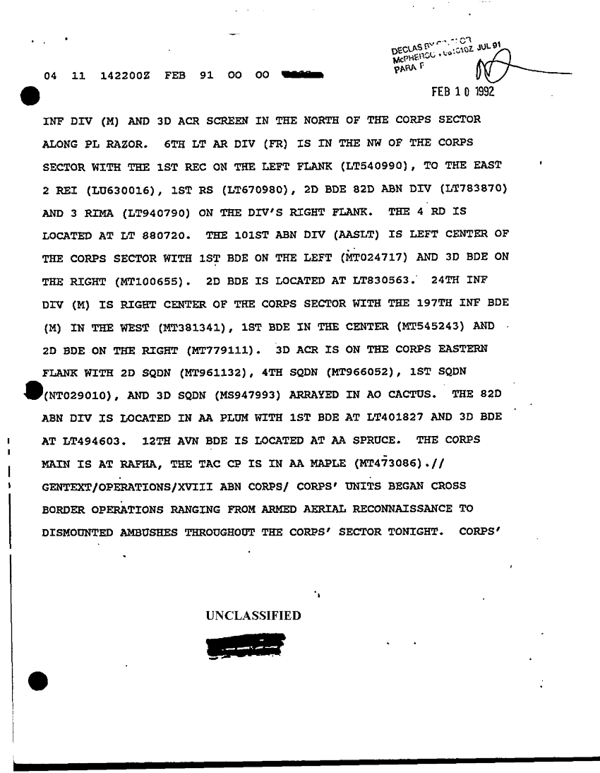 Document 11 f:/Week-14/BX000042/SITUATION REPORTS FEB-MAR 91/sitrep xviii abn corps 014 feb 91:1226961608263