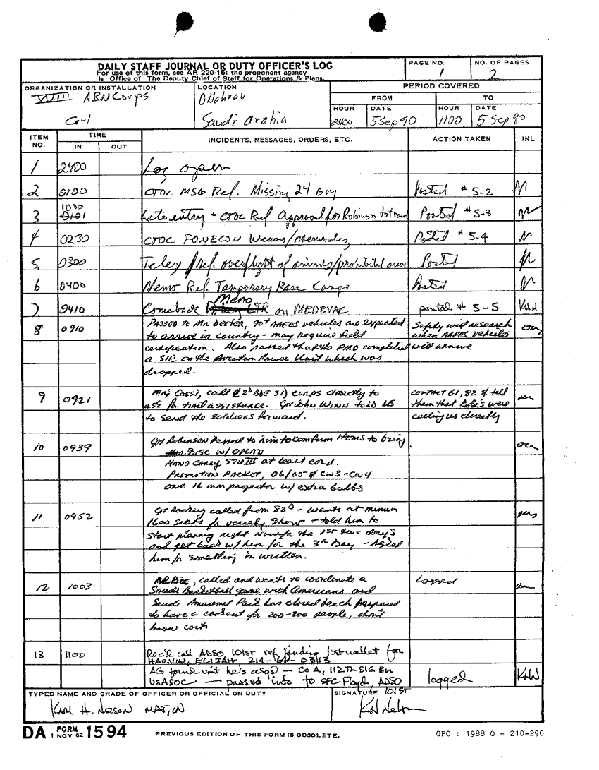 Document 110 f:/Week-15/BX000043/DUTY LOG G1 1-15 SEP 90/daily staff journal or duty officers log:12269616083010