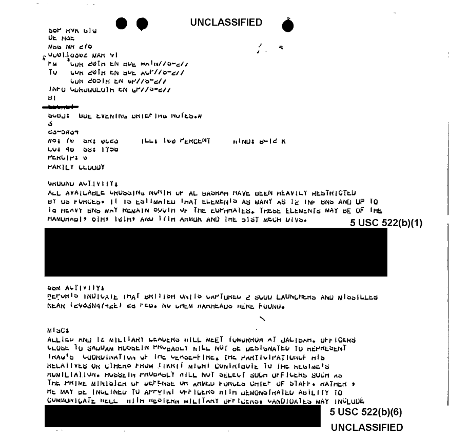 Document 4 f:/Week-18/BX000057/DUTY LOG MAIN CP MESSAGES 20 ENGINEER BDE 1 MAR 91/bde evening briefing notes:12269616083519