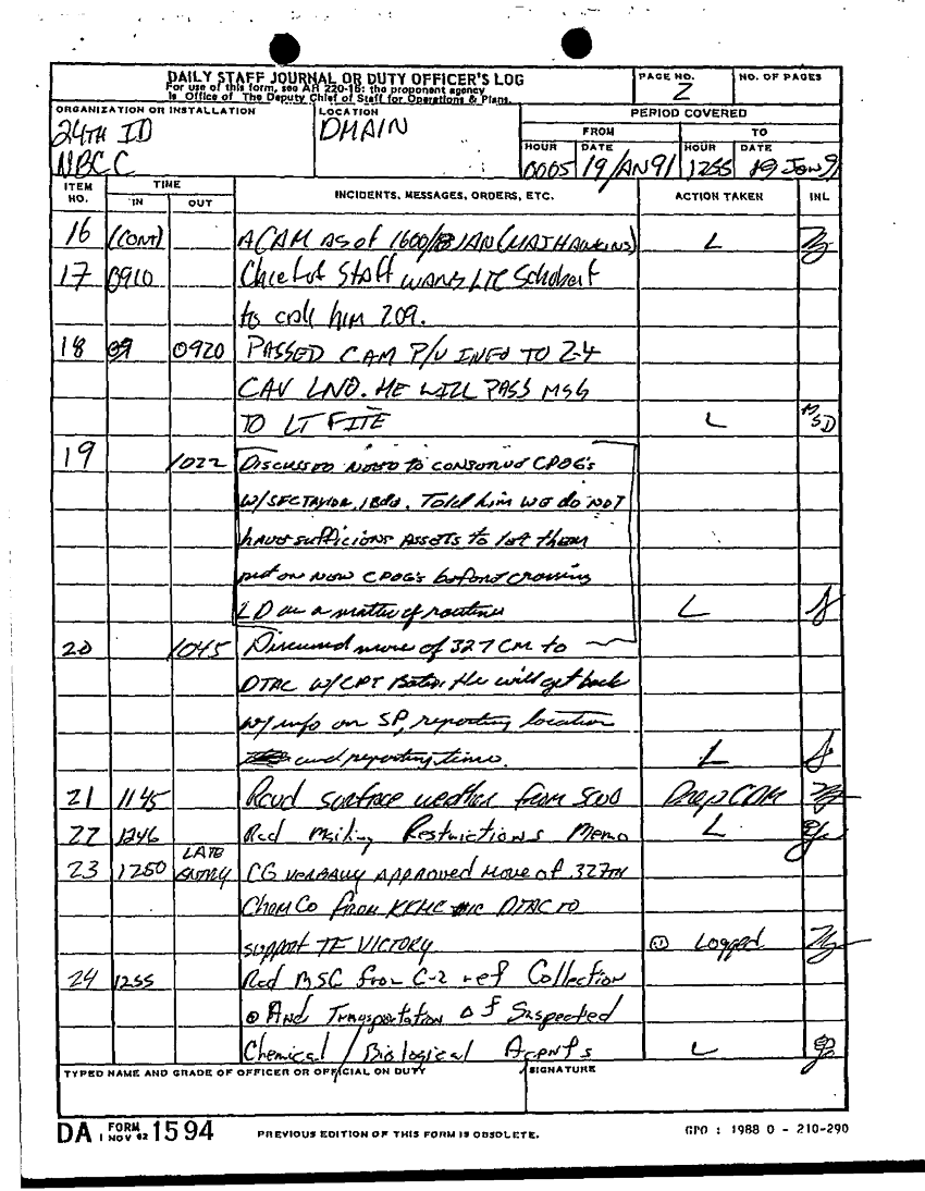 Document 85 f:/Week-22/BX001431/DAILY STAFF JOURNALS 24TH INF JAN MAR 91/daily staff journal:12269616085661