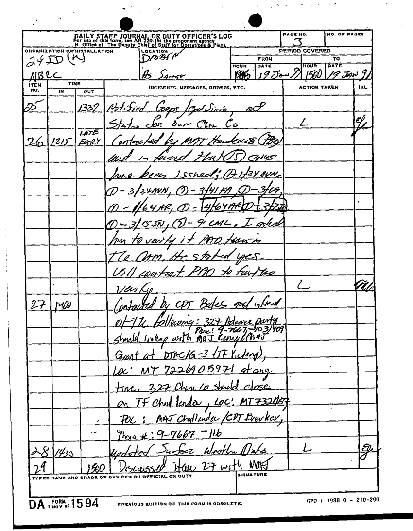 Document 85 f:/Week-22/BX001431/DAILY STAFF JOURNALS 24TH INF JAN MAR 91/daily staff journal:12269616085661