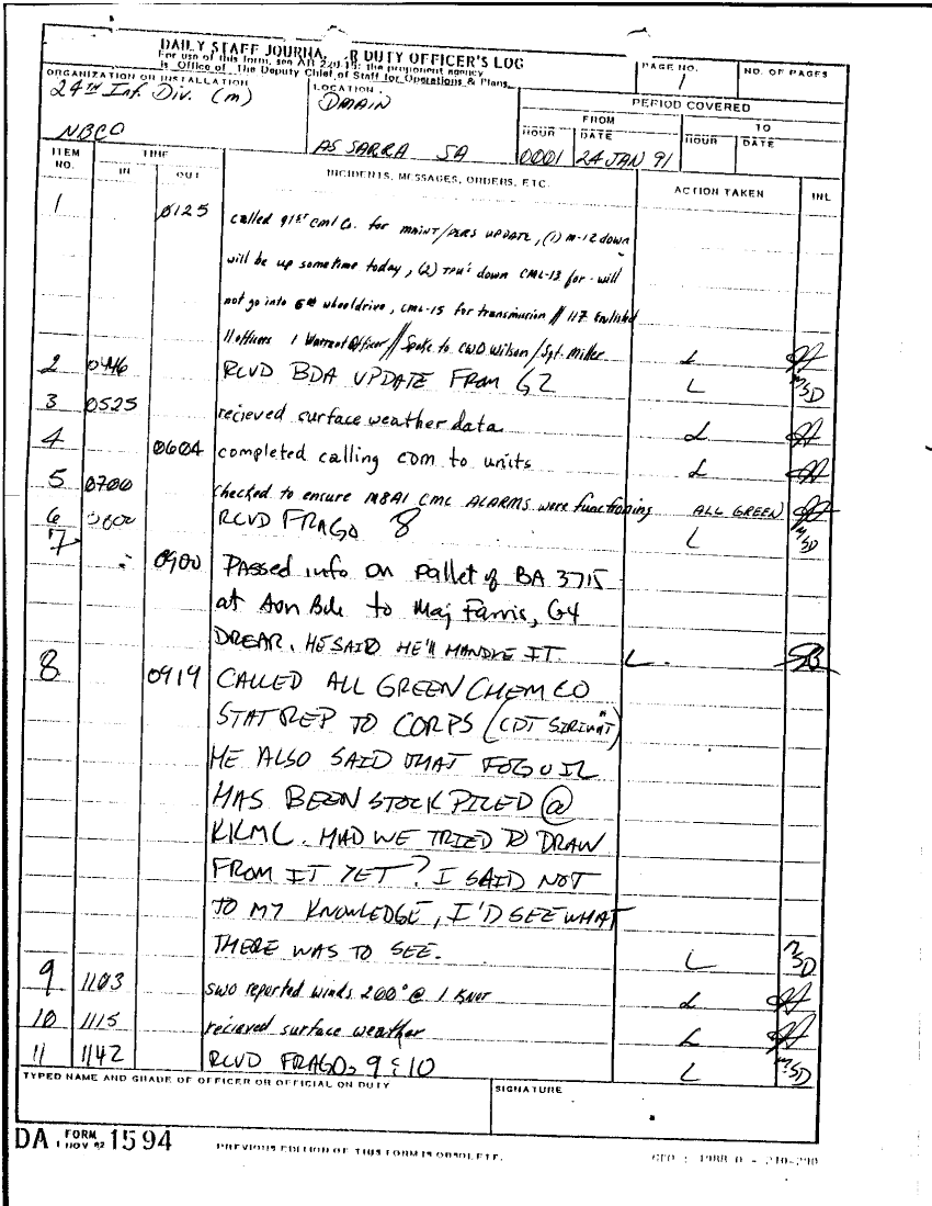 Document 85 f:/Week-22/BX001431/DAILY STAFF JOURNALS 24TH INF JAN MAR 91/daily staff journal:12269616085661