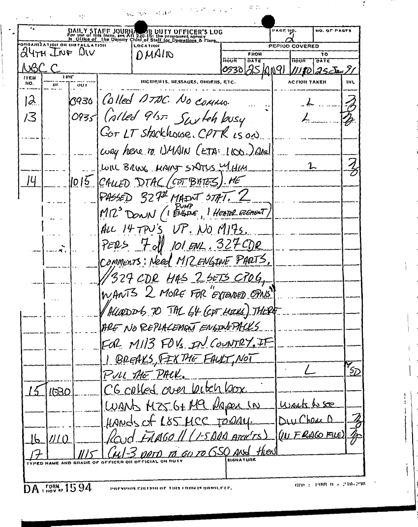 Document 85 f:/Week-22/BX001431/DAILY STAFF JOURNALS 24TH INF JAN MAR 91/daily staff journal:12269616085661