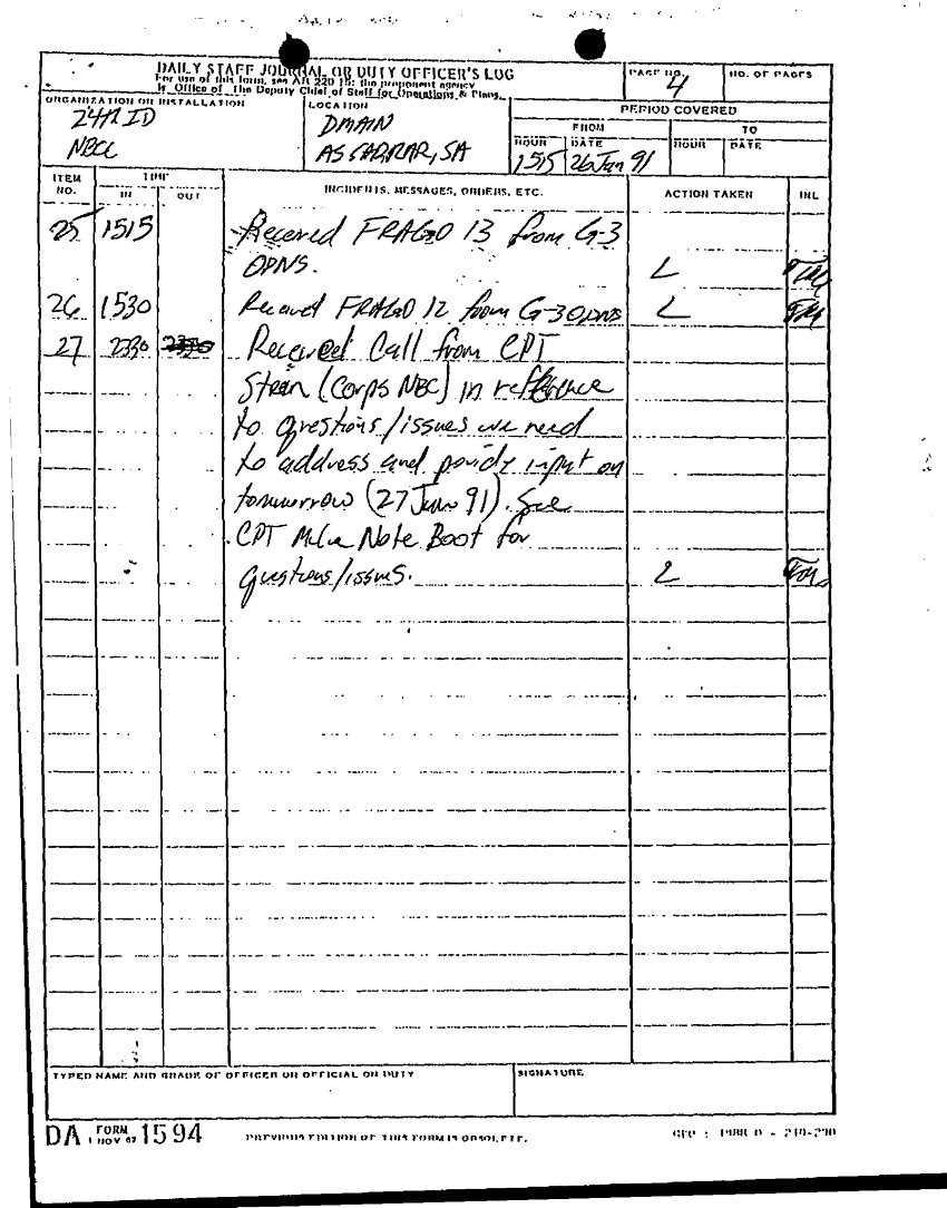 Document 85 f:/Week-22/BX001431/DAILY STAFF JOURNALS 24TH INF JAN MAR 91/daily staff journal:12269616085661
