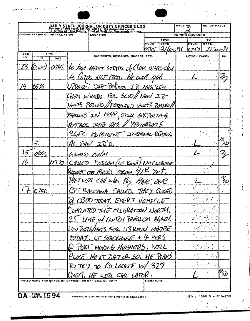 Document 85 f:/Week-22/BX001431/DAILY STAFF JOURNALS 24TH INF JAN MAR 91/daily staff journal:12269616085661