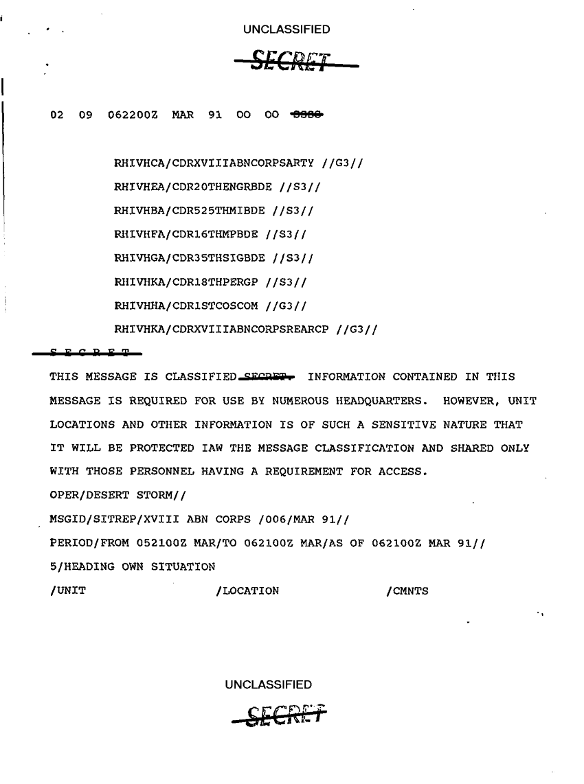Document 9 f:/Week-10/BX000020/DUTY LOG G3 REAR XVIII ABC MAIN SITREPS MAR 91/unit locations:12269616090477