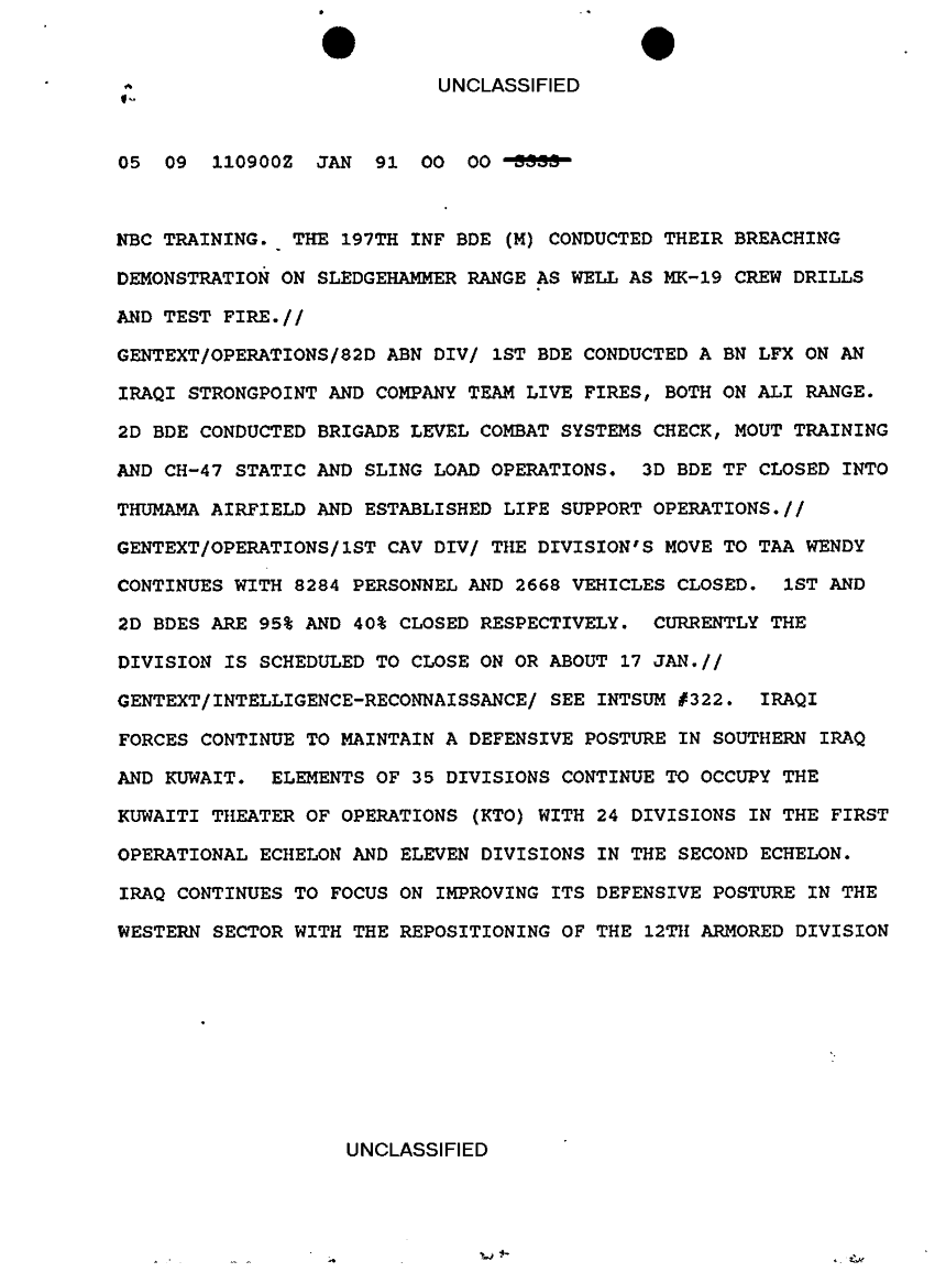 Document 9 f:/Week-10/BX000020/DUTY LOG G3 REAR XVIII ABC MAIN SITREPS JAN 91/message dated 11 jan 91:12269616085559