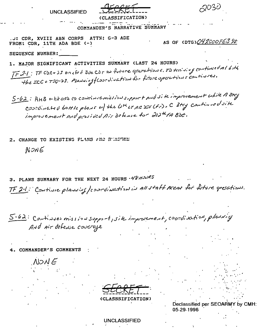 Document 36 f:/Week-18/BX000056/TASK FORCE 2-1 ADA SITREPS FEB 91/situation reports 11th ada bde feb 91:010297184310118
