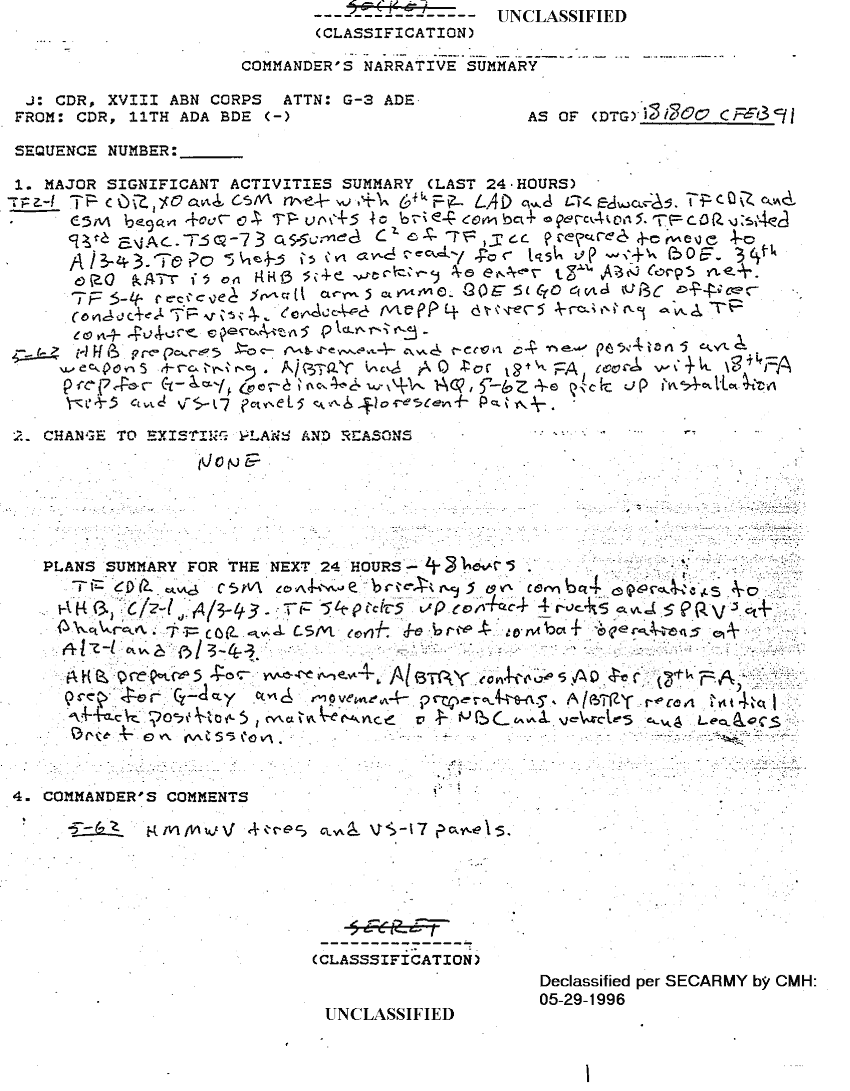 Document 36 f:/Week-18/BX000056/TASK FORCE 2-1 ADA SITREPS FEB 91/situation reports 11th ada bde feb 91:010297184310118