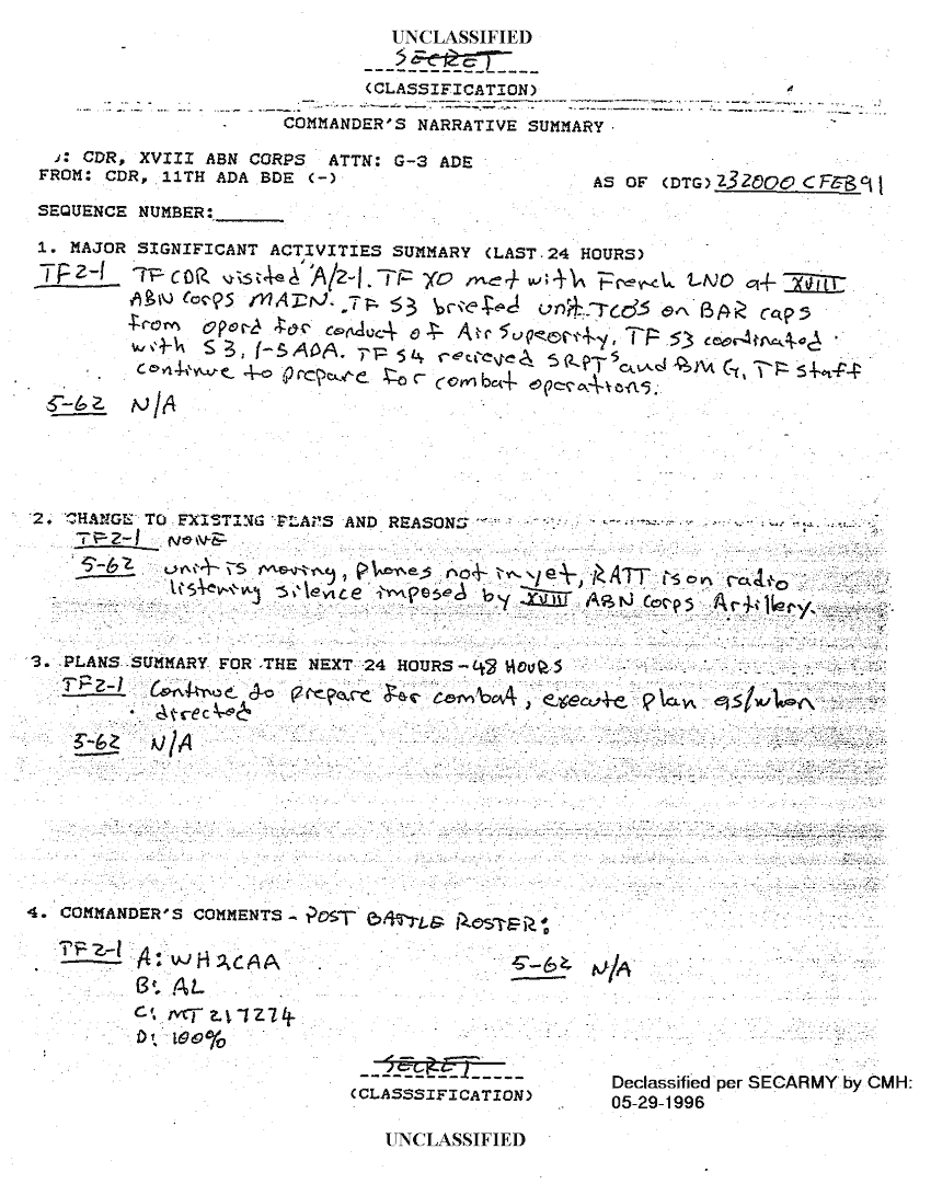 Document 36 f:/Week-18/BX000056/TASK FORCE 2-1 ADA SITREPS FEB 91/situation reports 11th ada bde feb 91:010297184310118