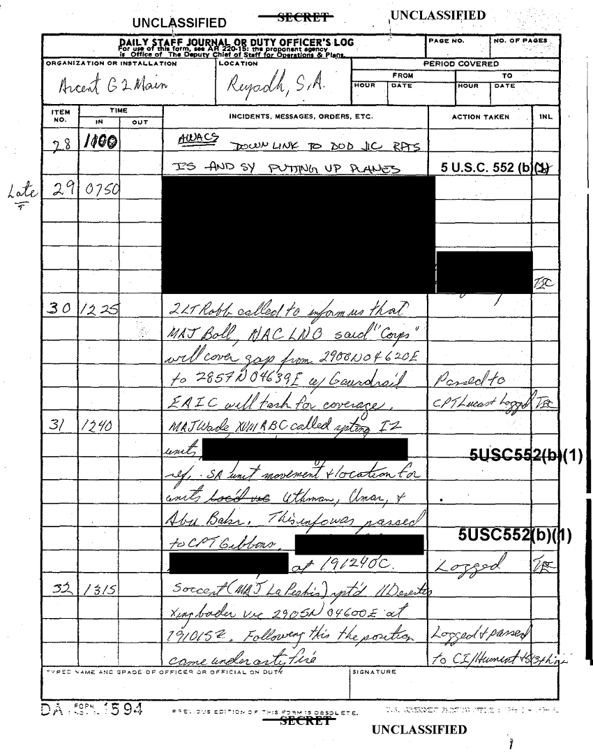 Subject = DUTY OFFICERS LOG ARCENT G2