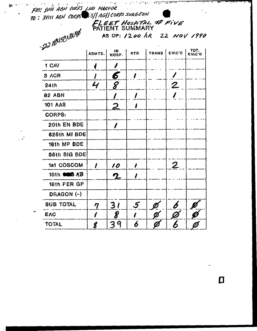 Unit = XVIII CORPS