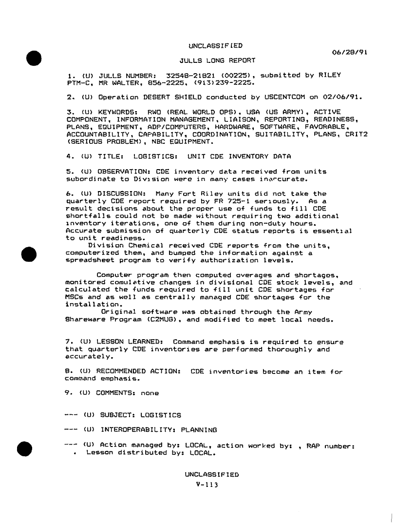 Subject = DESERT SHIELD STORM AFTER ACTION REPORT PHASE 1