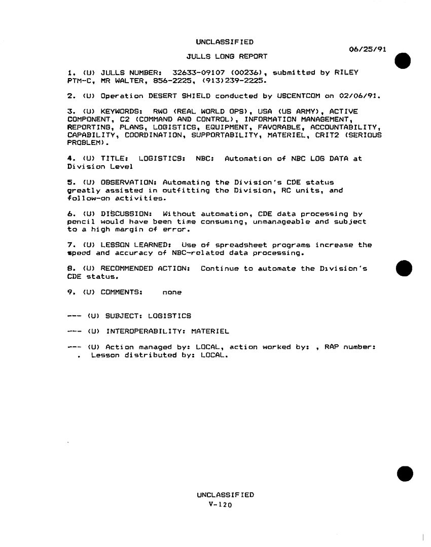 Subject = DESERT SHIELD STORM AFTER ACTION REPORT PHASE 1