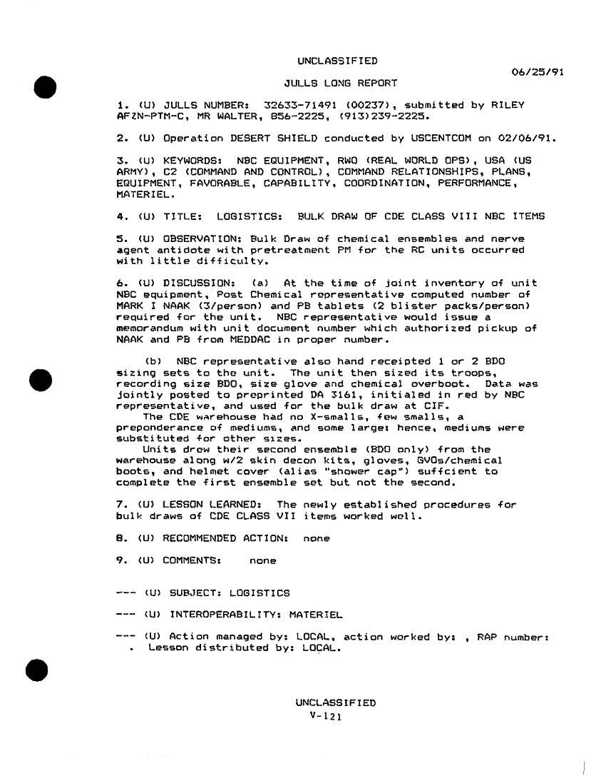 Subject = DESERT SHIELD STORM AFTER ACTION REPORT PHASE 1