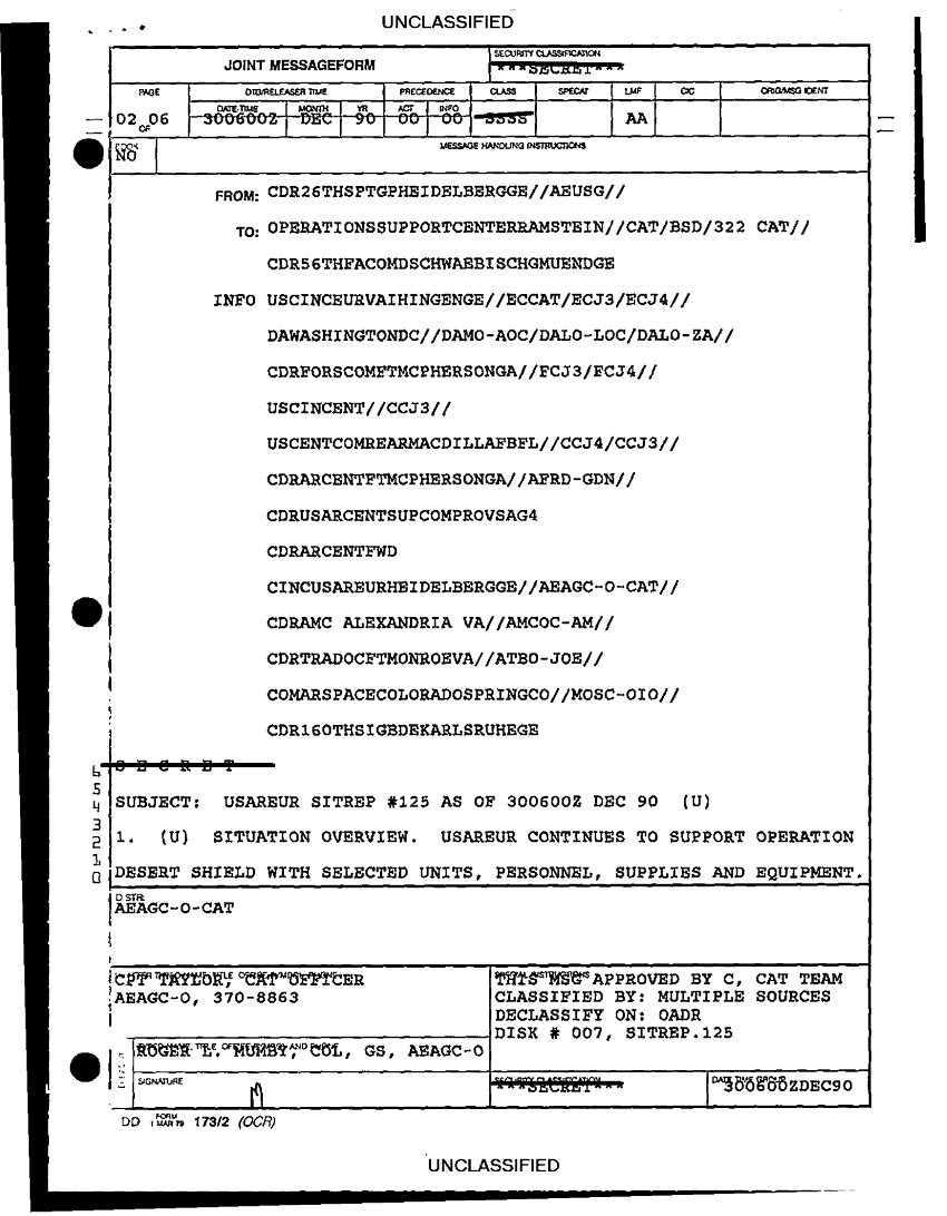 Document 7 f:/Week-24/BX000228/CINCUSAREUR HEIDELBERG GE DESERT SHIELD DAILY SITREPS 16 DEC/usareur sitrep 125 as of 30 dec 90:010297184326149