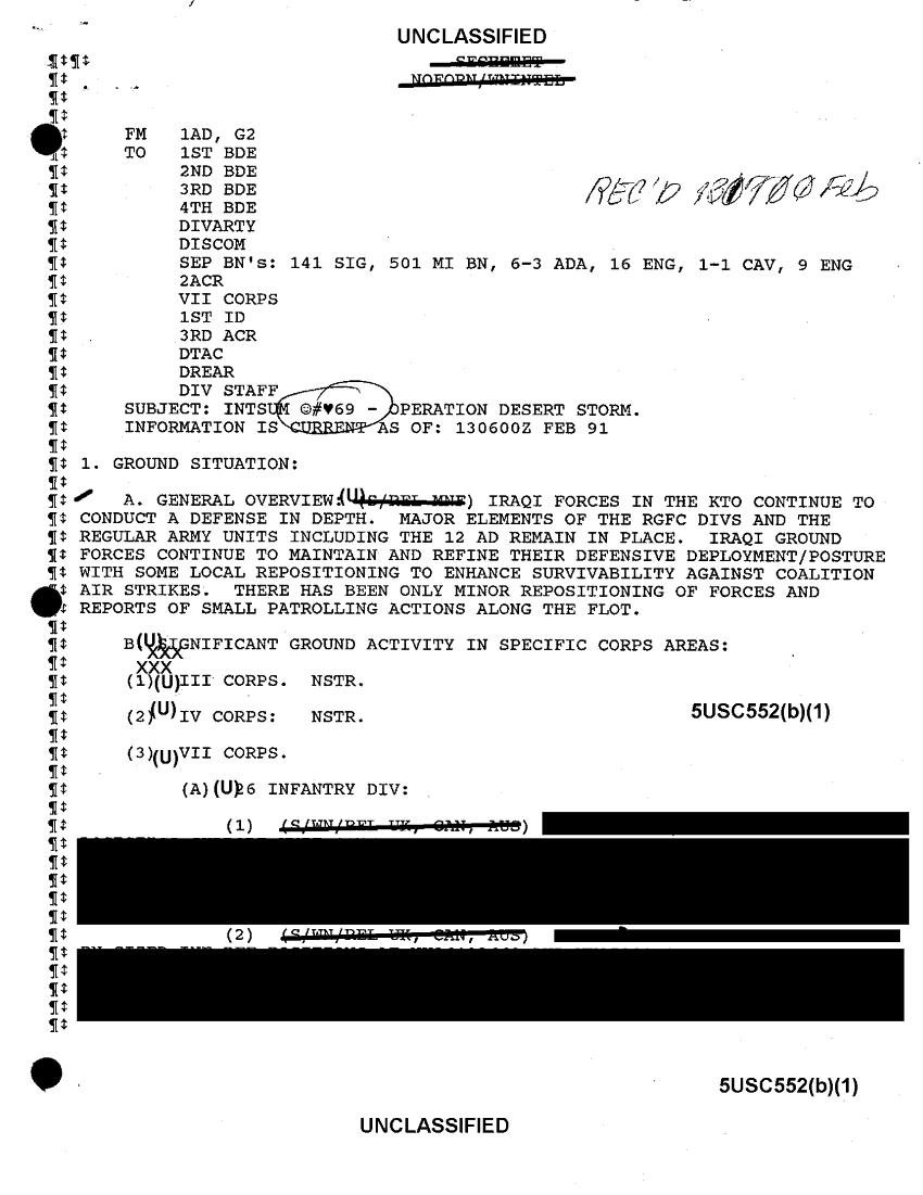 Subject = INTSUM 69 13 FEB 91