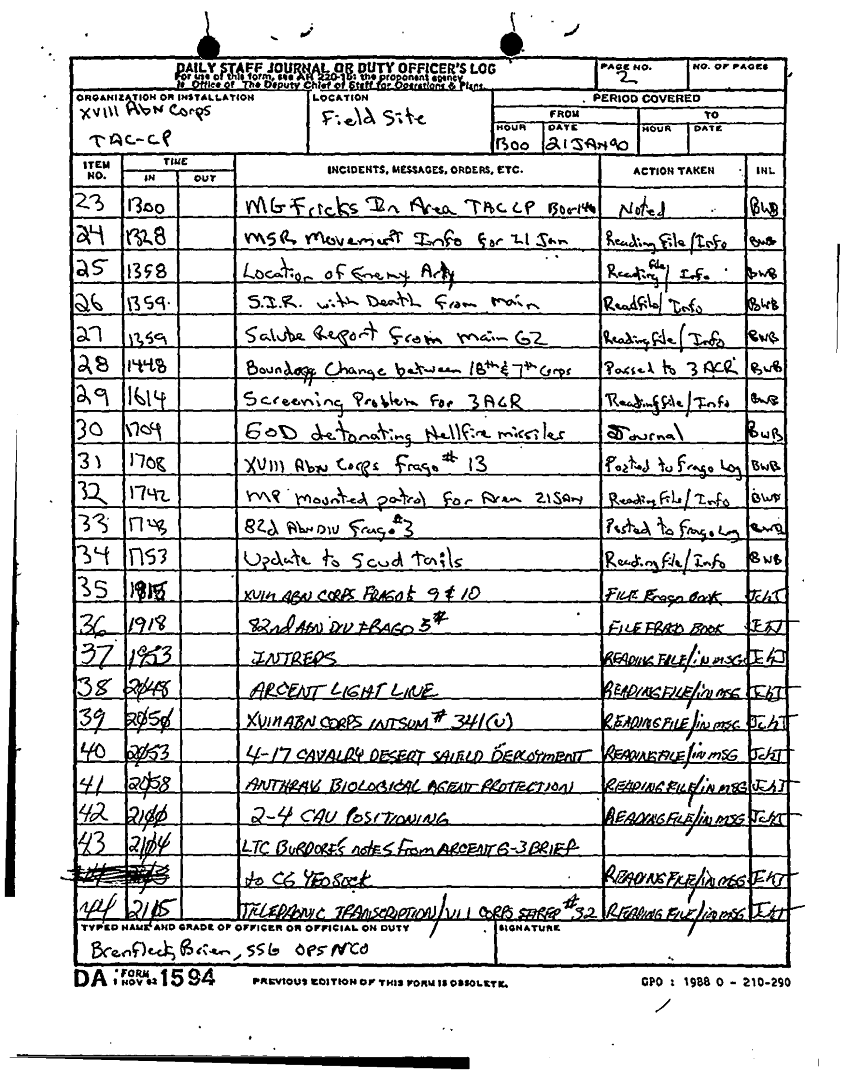 Document 44 f:/Week-12/BX000024/DUTY LOG G3 TAC CP 21 JAN 91/daily staff journal or duty officers log:01029718424161