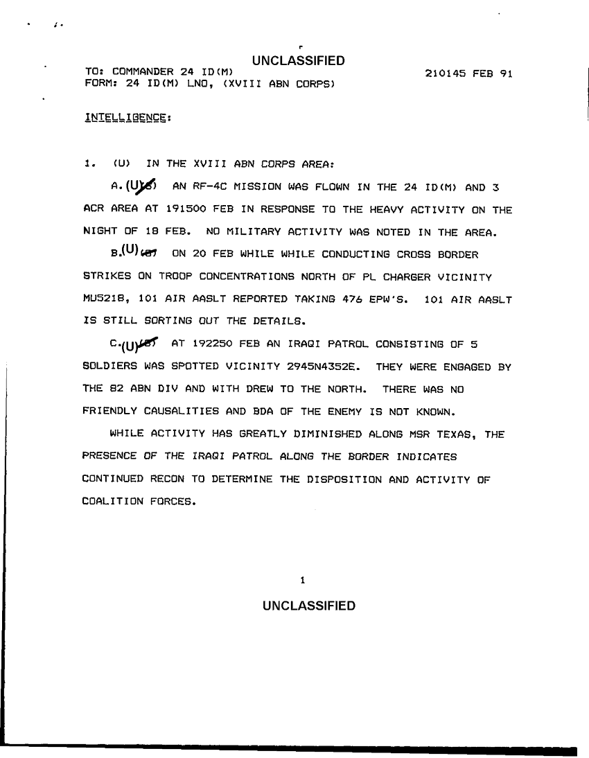 Document 11 f:/Week-12/BX000024/LNO REPORTS 24TH ID FEB 91/intelligence activity 21 feb 91:010297184316129