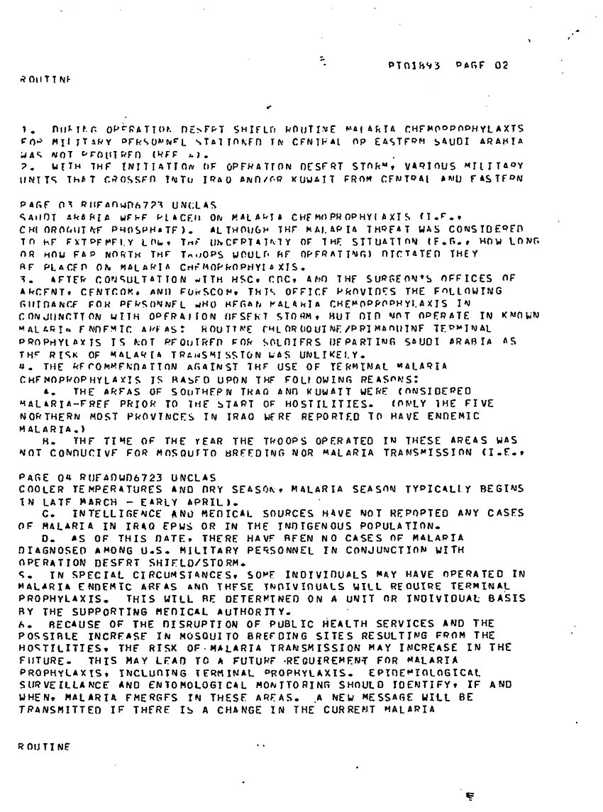 Document 3 f:/Week-20/BX001422/INCOMING DESERT SHIELD OPERATIONAL UPDATES DOM MAR 2 OF 5/terminal malaria chemoprophylaxis for troop depl:010297184307112