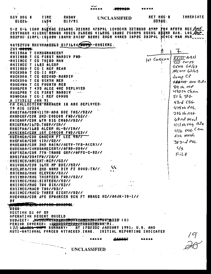 Folder Title = XVIII ABN CORPS INTSUM SITREPS-JAN 91-1