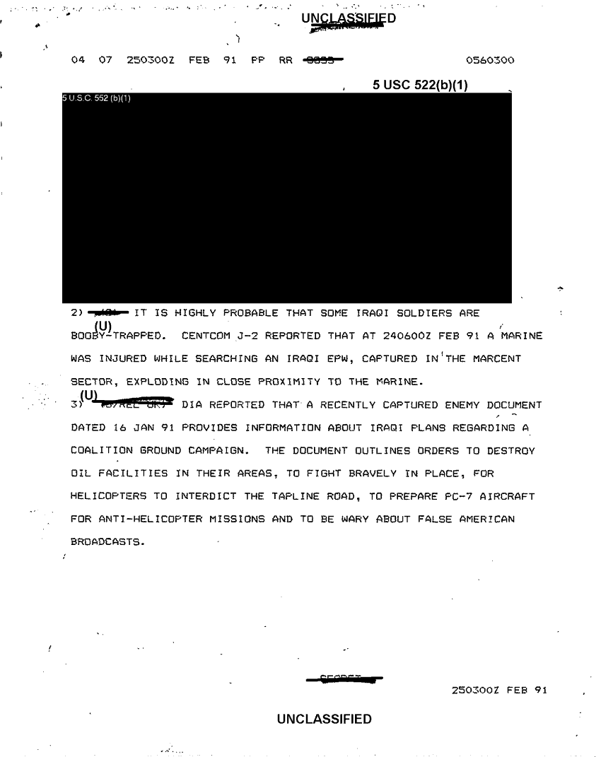 Document 15 f:/Week-46/BX004010/DESERT SHIELD AND DESERT STORM INTSUMS-SFOB 50-103-91 21 FEB-4 MAR 91/intsum sfob50 111 91:0103970806293
