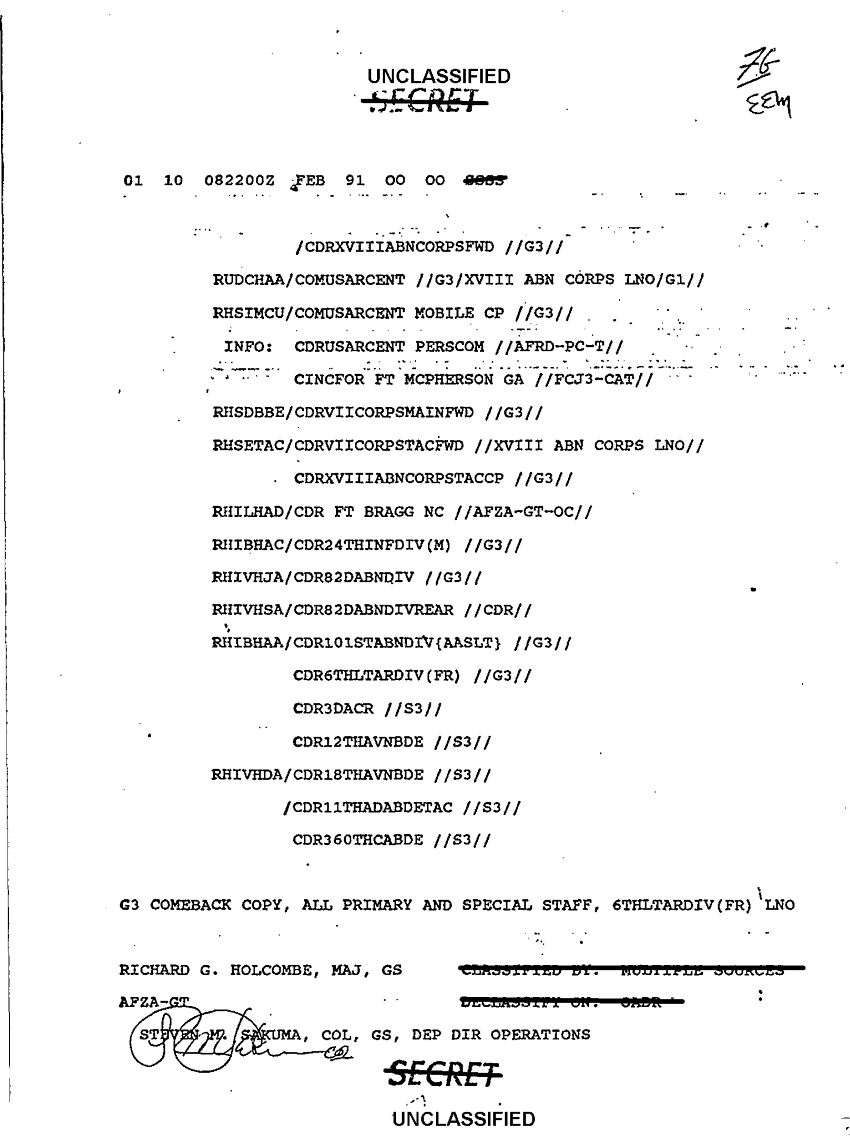 Subject = DAILY STAFF JOURNAL OR DUTY OFFICERS LOG 9 FEB 91